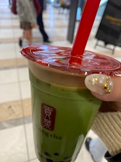 ゴンチャの抹茶🍵🤍 美味しい😋♡ 前も買った時アイスにしちゃったから 次こそホットにしようと思ったのに またアイスにしちゃった 春になっちゃう前にホットのタピオカ 飲みたい笑笑 C-club あんな