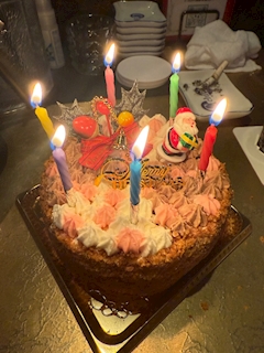 かわちいサンタさんがケーキを守るように真ん中に鎮座🎂🎅❤️まなが可愛く頭から食べてくれてサンタも本望だったと思う🤣❤️笑今年初のサプライズクリスマスケーキ🎂🩷嬉し美味しかった🥹🥳💕C-club 葉月愛子