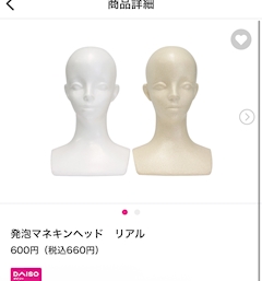 私は今1番これがほしい マネキンヘッド Amazonで探してたんだけど 記憶を辿るとダイソーにあった気がして 検索したらやはりあった😂 ほしいほしいほしいほしい 夜休みの時買いに行こう るんるん そして自分へのクリスマスプレゼントは 名古屋プレミアム商品券で エマーキッド買おうかな そしたらなんかお得な感じがする 今日は暇人出勤なので 楽しい席つけるといいなぁん