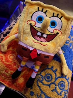 スポンジボブ🧽のぬいぐるみ❤️ 可愛すぎるーーーー🥹✨ そして嬉しすぎる🙌✨✨ まぢで可愛🙌⤴️⤴️ んでもって丁度ボブのハンカチ持っててよかった🥹✨ 幸せすぎるーーー めちゃテンション上がった 嬉しみと楽しみをありがとう🥳 ちゃお しーくらぶれいさま