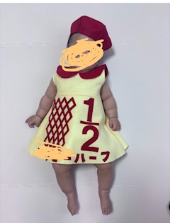 かわいいかわいい姪っ子ちゃん、 ついに生後半年"(∩>ω<∩)" お宮参りも済ませて キューピーハーフも着たみたい🤣