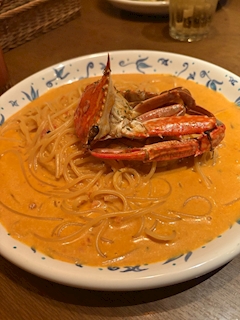 カニクリームという 見たら頼まずにはいられないメニュー発見 クリーム系のパスタって 途中で飽きちゃったりするんだけど カニクリームだと飽きない!! な、ぜ、だ、! 単純にカニクリームが好きだからかもしれん なんだ〜〜 シークラブ໒꒱てん