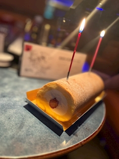 ろうそく2本でこんなに映えになるとは、、、😂 お誕生日のロールケーキでした🙌 私は写真撮るの下手くそなので撮ってもらった😂💦 めちゃ最高ショット👏 苺の堂島ロール美味しかった😋 ここのくどくないから最高⤴️ お客様の誕生日のロールケーキのお裾分けありがとう😊❤️ ロールケーキなのがまた斬新😂 ちゃお しーくらぶれいさま