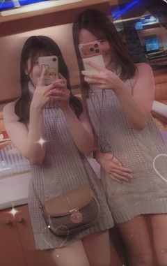 この前のイベントのーっ🫶 背中 開きすぎだし 凍え死にそうだった、 前から見ると ふつうのニット なのにね🤭 シークラブまな🎀 あおいさんとっ!