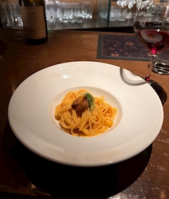 こんにちは🧸 ウニのパスタ食べました.ᐟ.ᐟ 濃厚で美味しかったです🍴🤍゛ 赤ワインと相性ばっちりでした◎ 前菜もウニを使ったお料理でしたが、どちらも美味しくて満足しました! 美味しいものが食べられて幸せです💖 ゆら